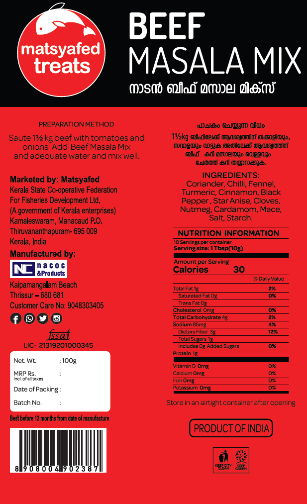 Description: Brand: Matsyafed Treats Ready-to-cook Beef Masala Mix