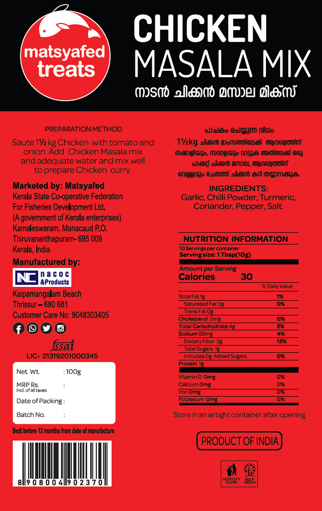 Description: Matsyafed Treats – Chicken Masala Mix Ready-to-cook Masala Powder